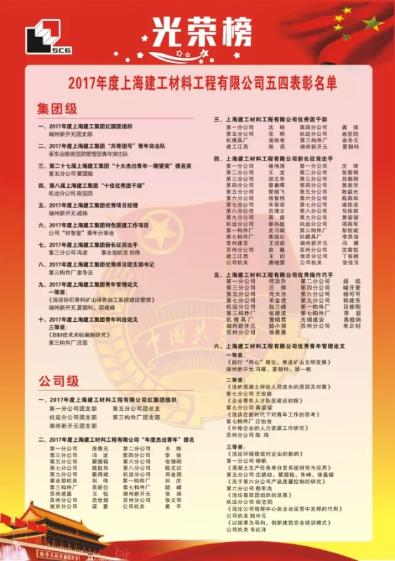 材料公司“五四”表彰大會(huì)暨青年突擊隊(duì)授旗儀式于5月11日下午在上海召開(kāi),會(huì)上表彰了一批在2017年成績(jī)突出的先進(jìn)集體及個(gè)人。新開(kāi)元共獲得了三項(xiàng)集團(tuán)榮譽(yù)和六項(xiàng)材料公司榮譽(yù)(集團(tuán)紅旗團(tuán)組織、集團(tuán)優(yōu)秀項(xiàng)目經(jīng)理、集團(tuán)青年管理論文一等獎(jiǎng)、材料公司紅旗團(tuán)組織、材料公司年度杰出青年提名、材料公司優(yōu)秀團(tuán)干部、材料公司新長(zhǎng)征突擊手、材料公司優(yōu)秀操作巧手、材料公司優(yōu)秀青年管理論文)。